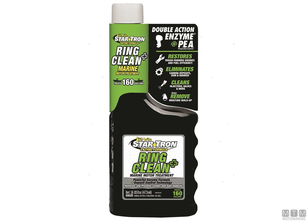 Additivo Star Brite Ring Clean appositamente formulato per motori marini a benzina, ideale per attivare qualsiasi motore dopo un periodo di fermo o rimessaggio. Grazie agli enzimi contenuti è in grado di rimuovere depositi e incrostazioni da iniettori, carburatori, valvole, condotti e camere di combustione. Viene usato anche come additivo carburante per prevenire formazione di carbonio e gomma. Dosaggio: 10 ml per 12 litri di carburante.