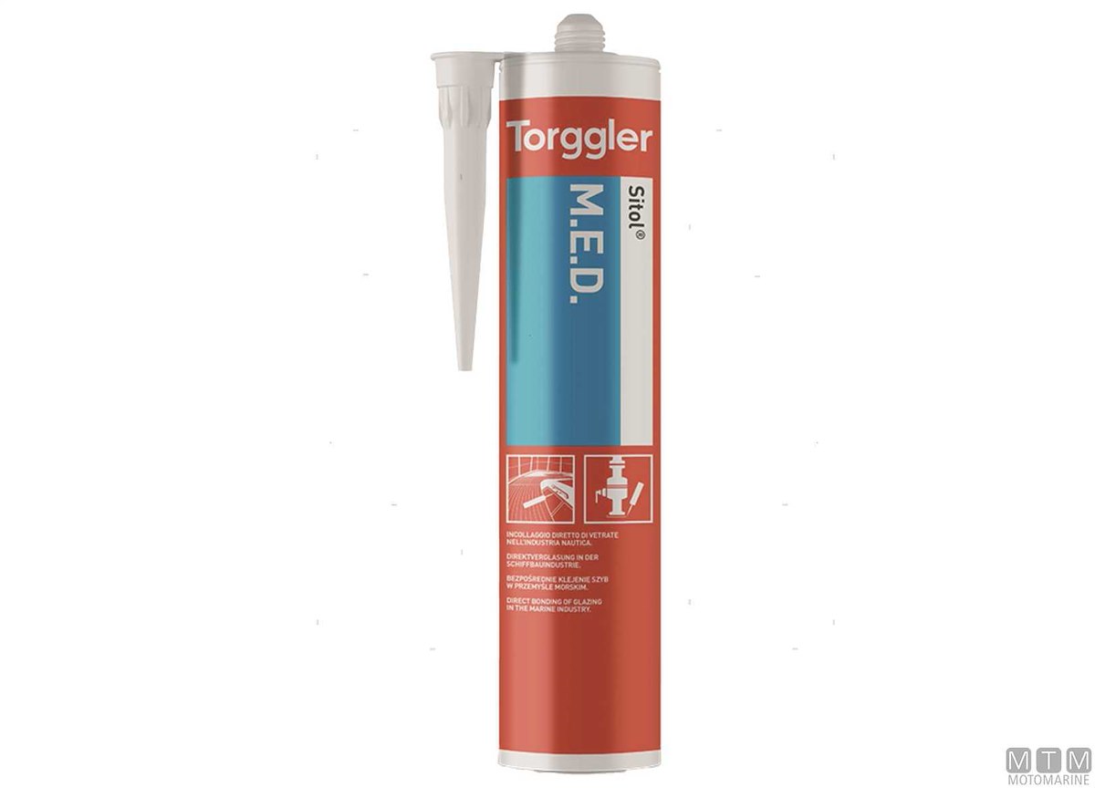 Adesivo sigillante ibrido Torggler ad alte prestazioni a rapido indurimento permanentemente elastico per incollaggio e sigillatura in coperta e sottocoperta di qualsiasi materiale nell'industria nautica, specifico per vetri minerali e organici.
