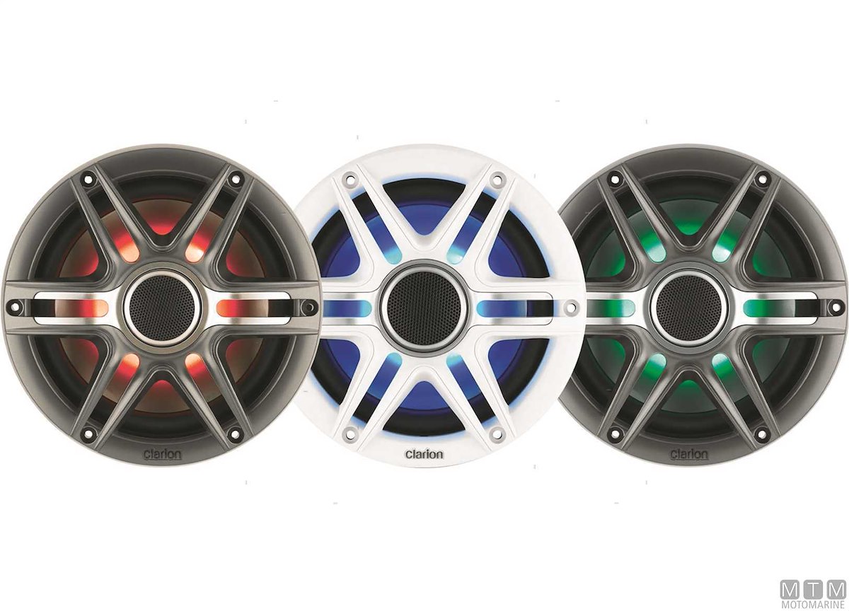Coppia di altoparlanti Clarion CMSP-651 a due vie con illuminazione LED RGB. Costruiti con componenti di qualità marina con tweeter a cupola in seta e cono woofer in polimero iniettato con filtro passa-alto. Include due griglie bianche e due griglie nere intercambiabili.