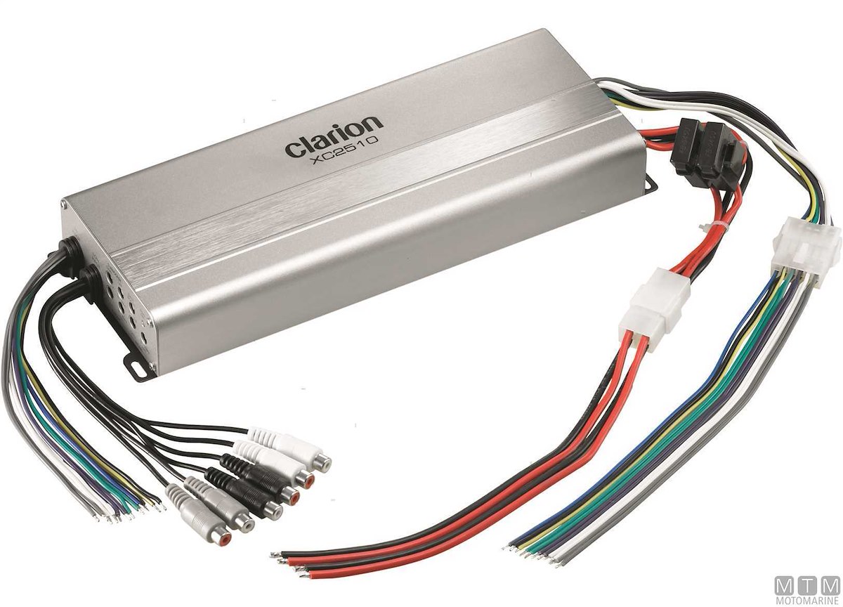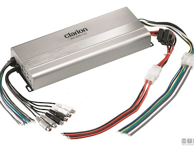 Amplificatori marini Clarion a tecnologia Mosfet classe D. Struttura compatta antiurto in Alluminio con componenti e circuiti rivestiti per una protezione completa da corrosione. Completi di filtri ed ingressi ad alto livello.