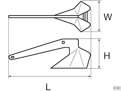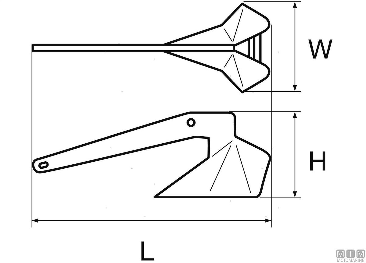 Ancora in acciaio zincato per fondali morbidi come sabbia, fango e melma. Grazie alla distribuzione del peso in punta l'ancora trova immediatamente l'angolo ottimale di penetrazione e garantisce una tenuta stabile.