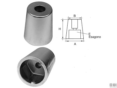 Anodi Martyr in lega di Alluminio M2 a ogiva con innesto conico esagonale.