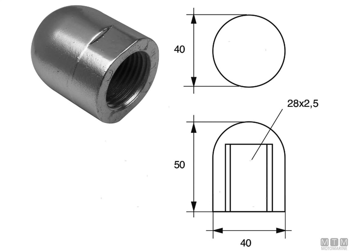 Anodo a ogiva con filettatura metrica per assi portaelica.