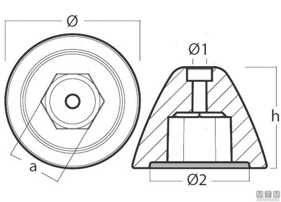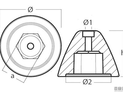 Anodo a ogiva con cava esagonale per eliche di manovra Bow Thruster Quick.