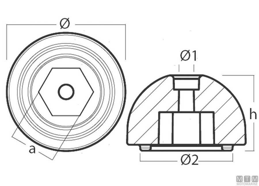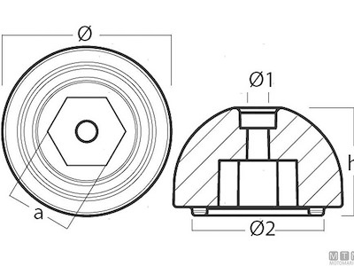 Anodo ogiva con cava esagonale per eliche di manovra Bow Thruster Quick.
