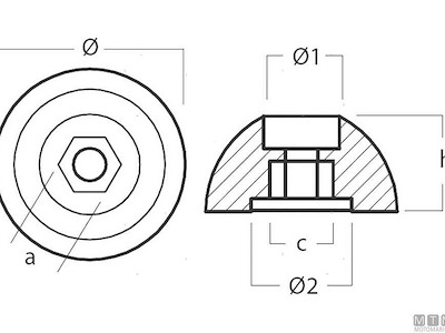 Anodo a ogiva con cava esagonale per eliche di manovra Bow Thruster Quick.