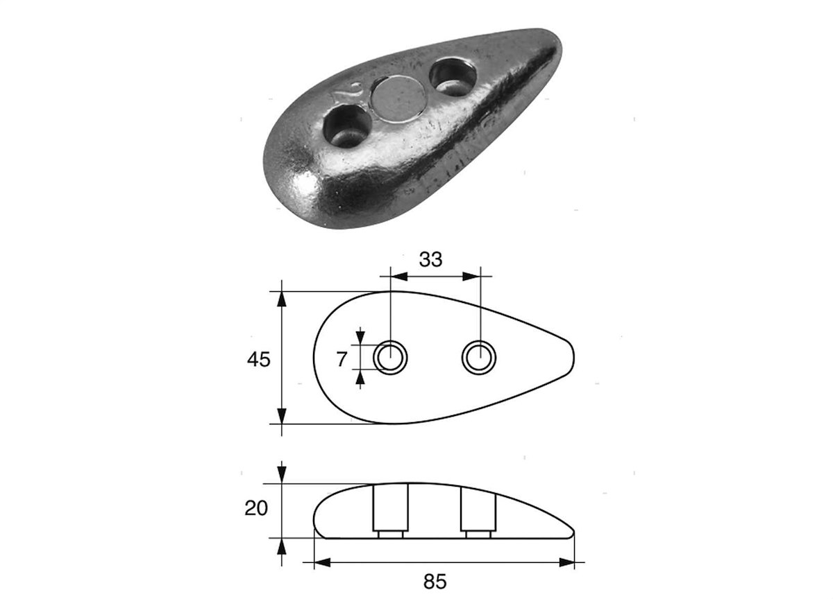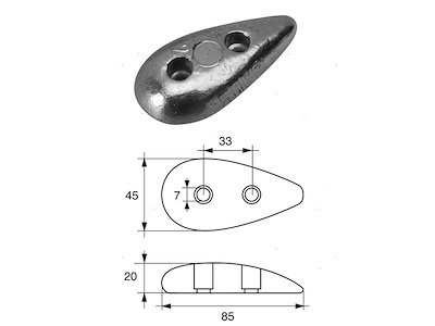 Anodo piastra a goccia per carene.