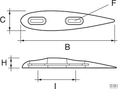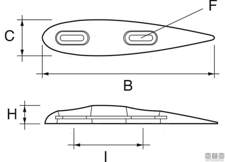 Anodo piastra ovale con profilo idrodinamico Naca.