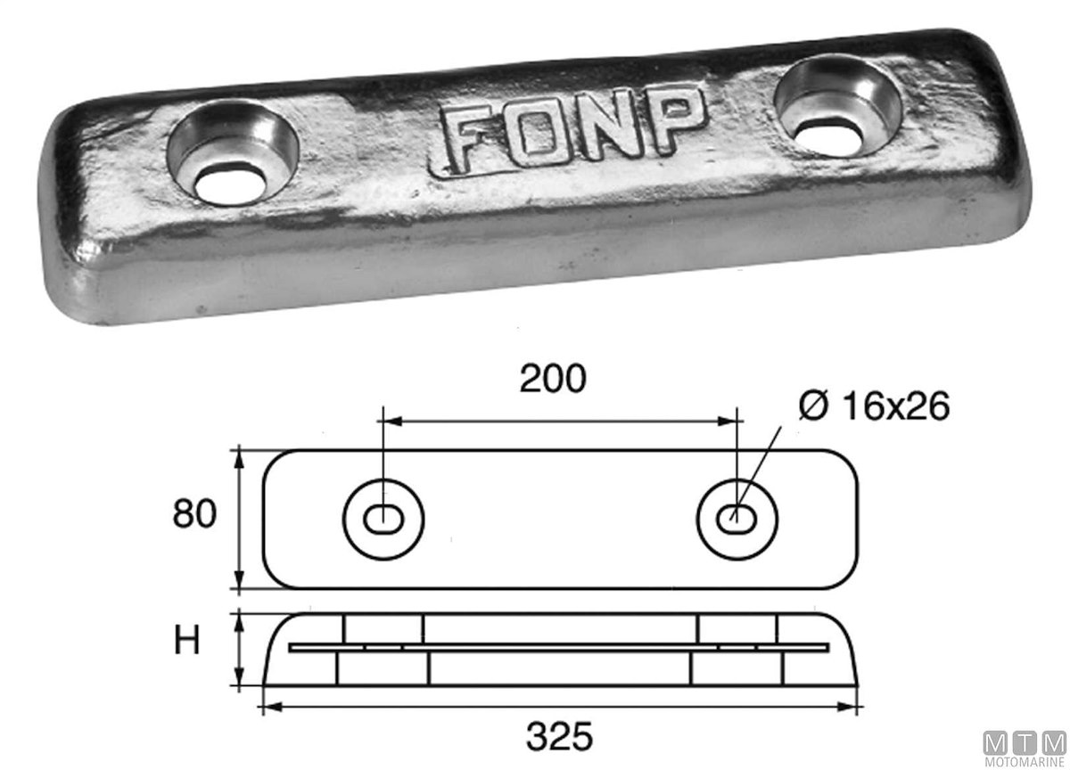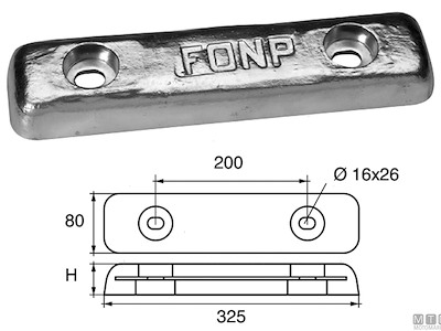 Anodo piastra rettangolare per carene.
