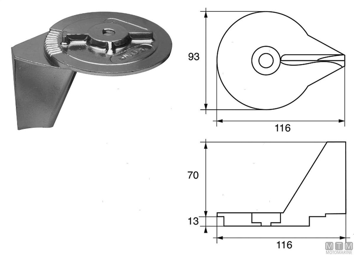 Anodo pinna per motori Mercury 30-40 HP (2cil 2T) / 25-50 HP (4T).