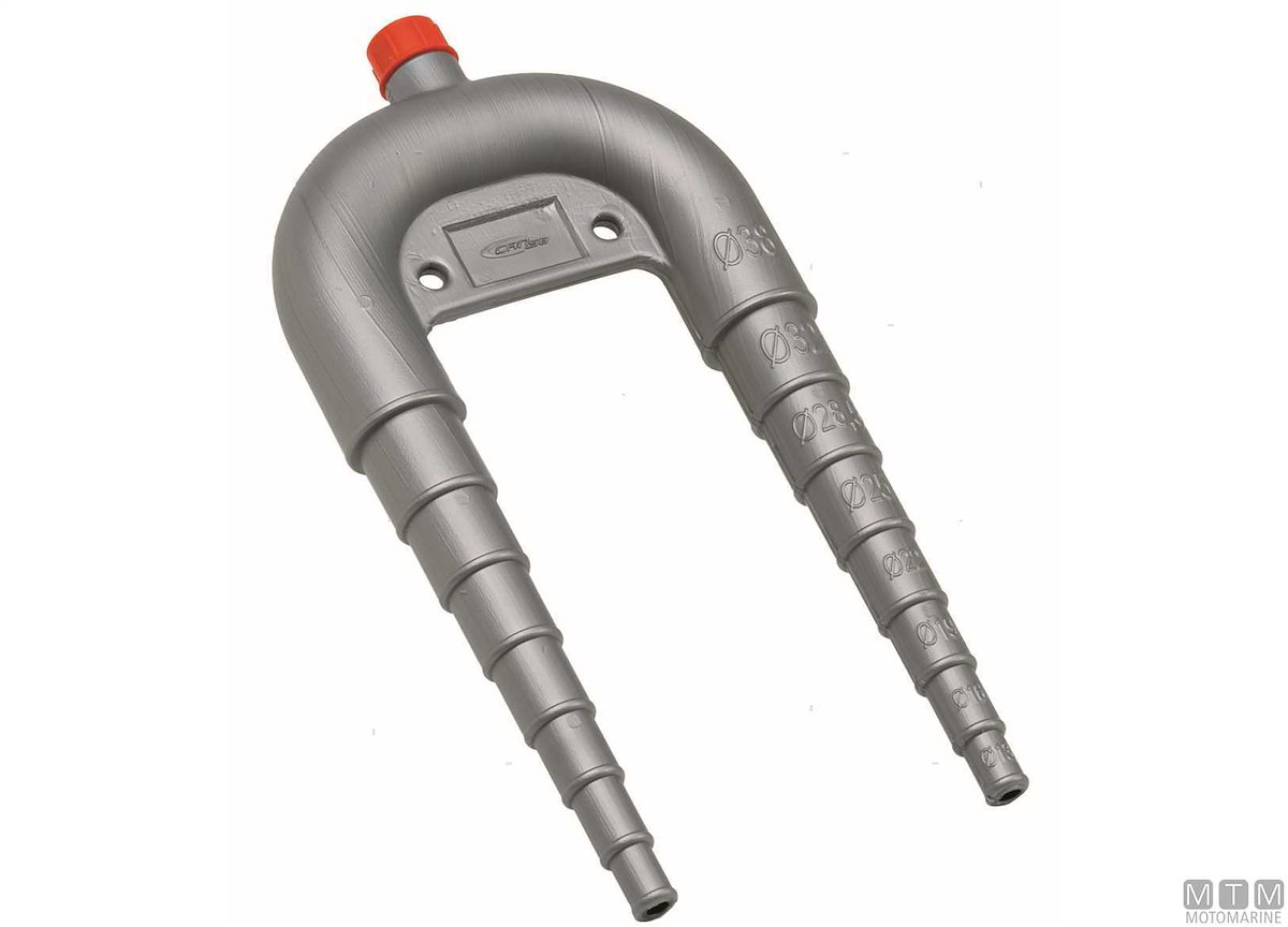 Antisifone per lo scarico di motori montati sotto la linea di galleggiamento.