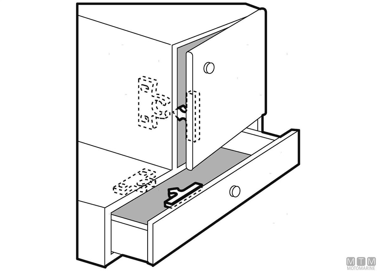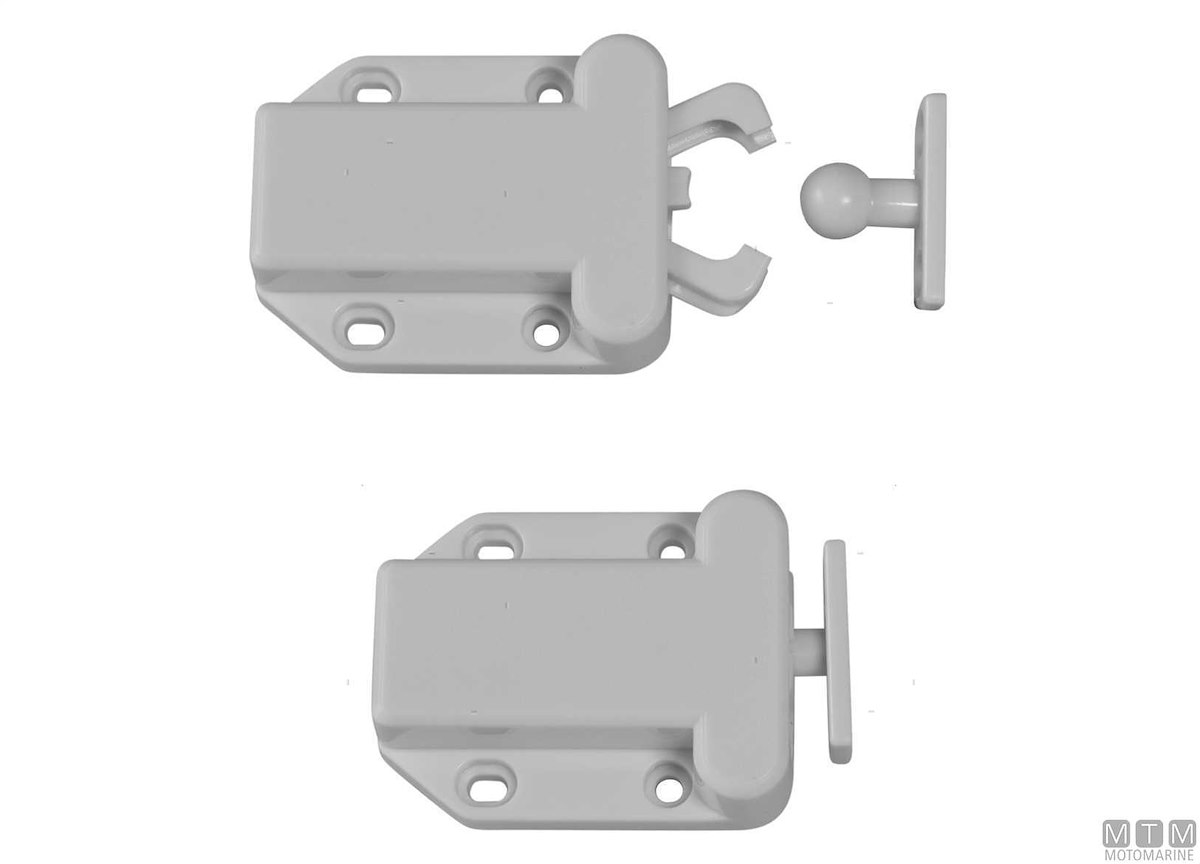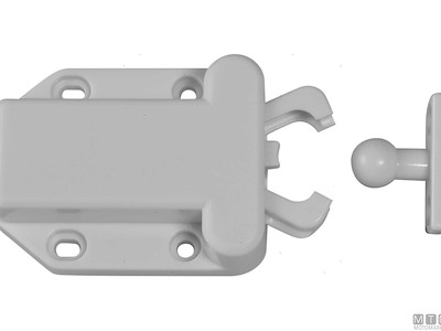 Arresto a spinta Crab in Plastica per portelli e cassetti completo di viteria. Meccanismo di incastro morbido a molla.
