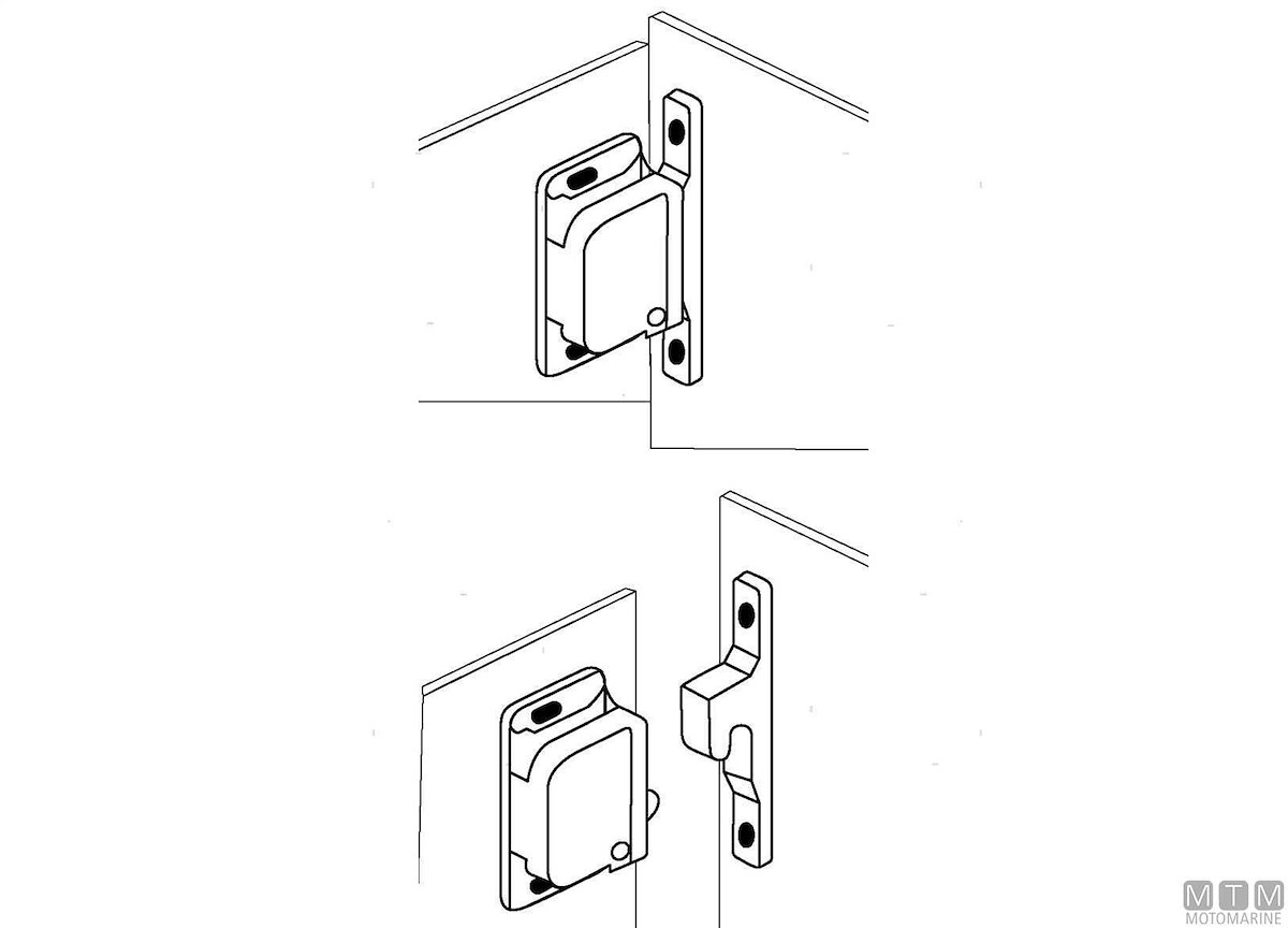 Arresto a spinta in plastica rinforzata per porte e portelli.