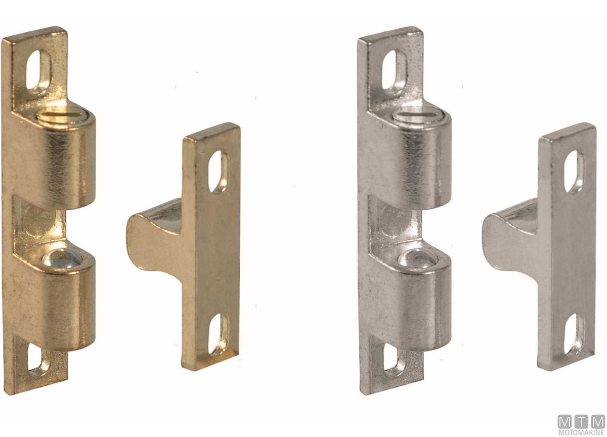 Arresto a spinta per cassetti e antine. Base e attacco in lega Zamac con finitura Ottone oppure Cromato. Venduti in coppia.