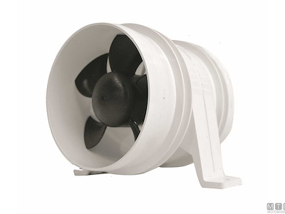 Aspiratori elettrici impermeabili turbo in-line per vani motore e cabine. Compresi di 2 fascette di fissaggio. Ventilatore progettato per garantire un flusso d'aria superiore del 25% rispetto agli altri aspiratori consumando il 40% in meno. Corpo del motore nichelato con cappuccio e cavi sigillati per una protezione totale dalla corrosione.