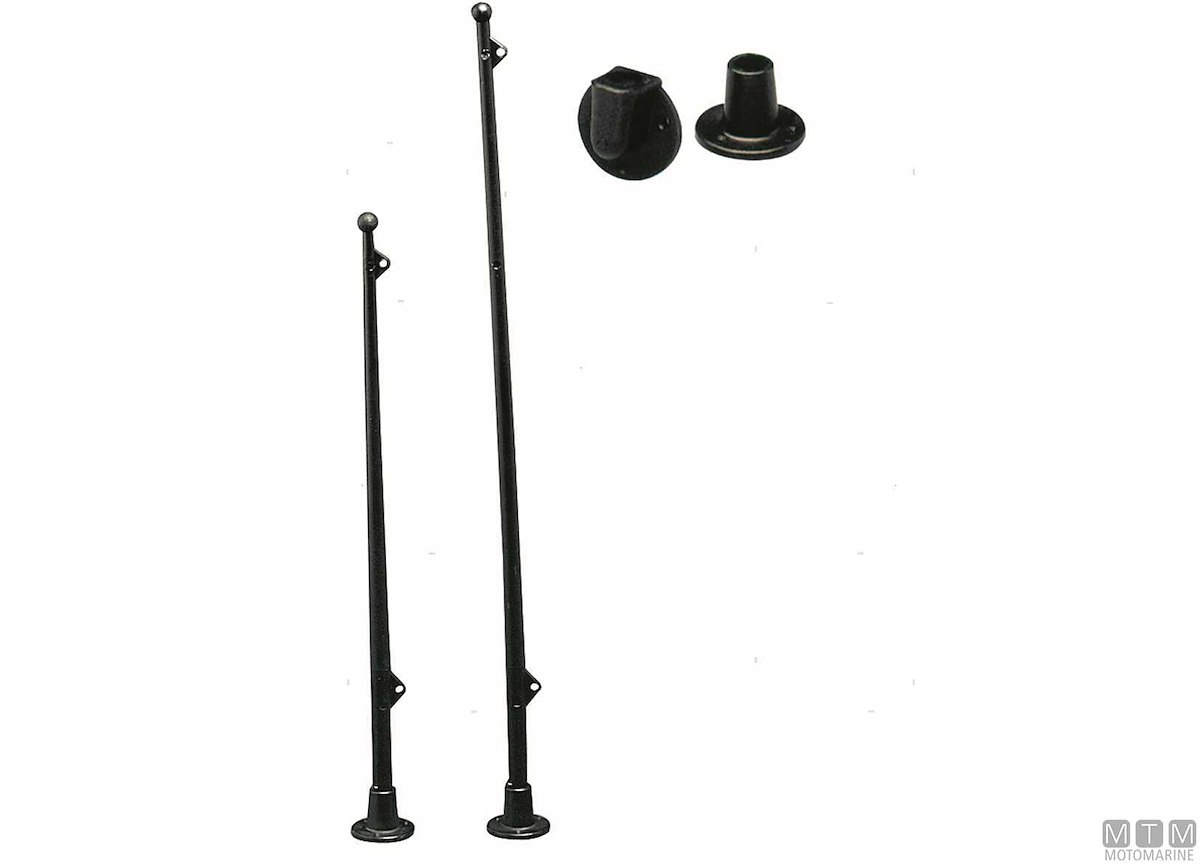 Asta portabandiera in plastica completa di base verticale e orizzontale per montaggio su piano oppure a parete. Disponibile anche la base a ventosa opzionale per gommoni.