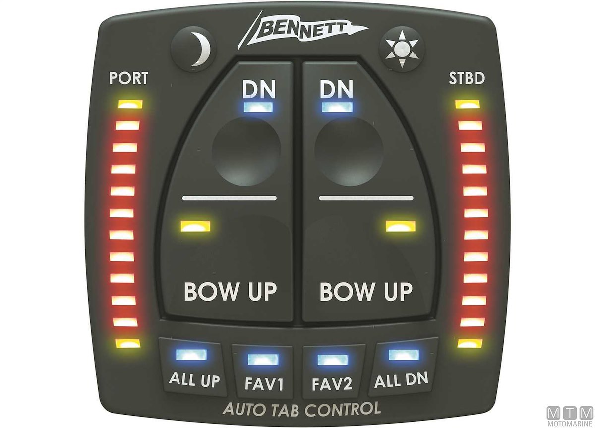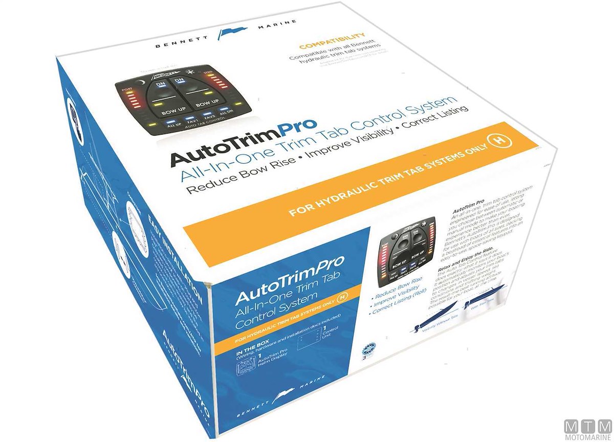Sistema controllo assetto Bennett all-in-one AutoTrim Pro 12/24V composto da pannello comando indicatore LED, centralina di controllo e cavi di collegamento. Si può installare sia su sistemi idraulici che su quelli tipo Bolt elettrici. La centralina rileva segnali in tempo reale e invia il comando ai flap, correggendo l'assetto in relazione alla scelta impostata, alla velocità, oppure alle condizioni del mare. Completa con collegamento NMEA2000 e auto tab retractor (ATR) che fa rientrare automaticamente i flaps quando si disinserisce la chiave di accensione. I sensori testa pistone vanno acquistati a parte per gli impianti idraulici, non sono invece necessari per gli impianti elettrici.