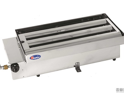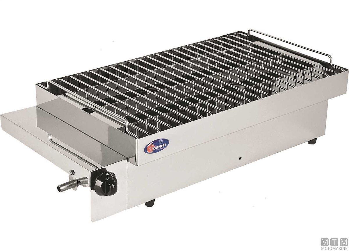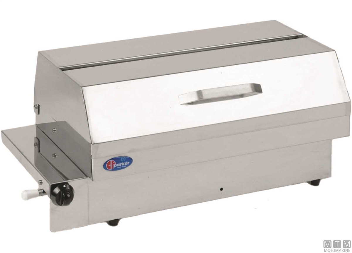 Barbecue grill a gas con cottura radiante, interamente in acciaio inox. Dotato di termocoppie di sicurezza, piano raccogli-grasso estraibile e staffa di fissaggio. Coperchio opzionale venduto separatamente.