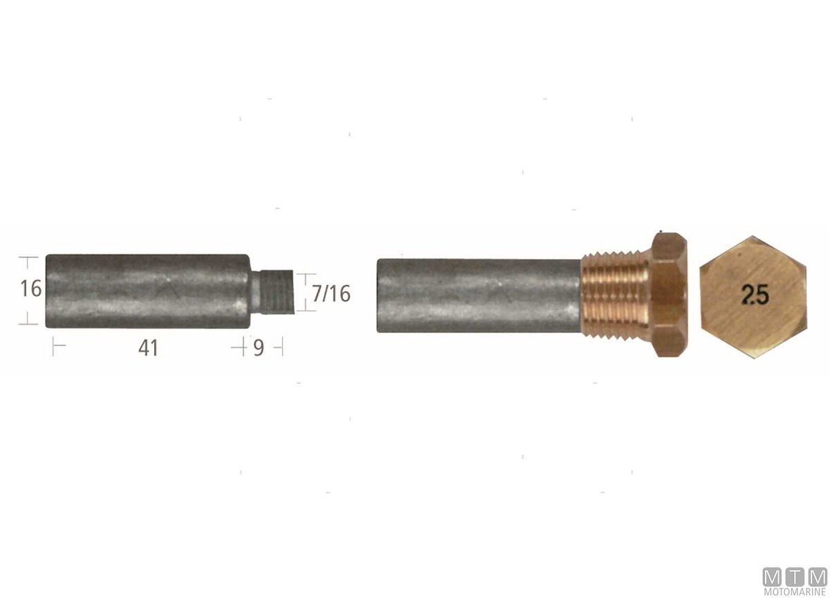 Anodo barrotto per motori Caterpillar (16x41mm).
