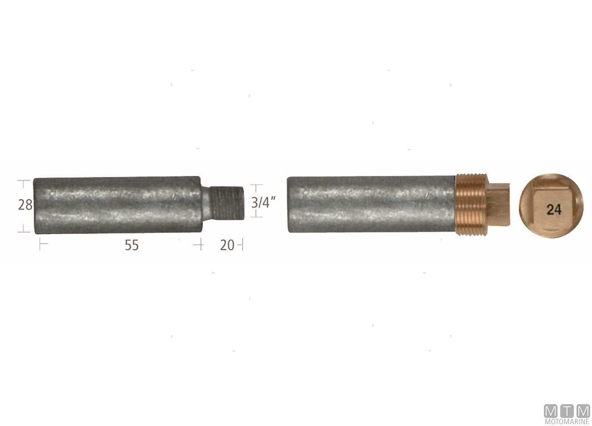 Anodo barrotto per motori Caterpillar (28x55mm).