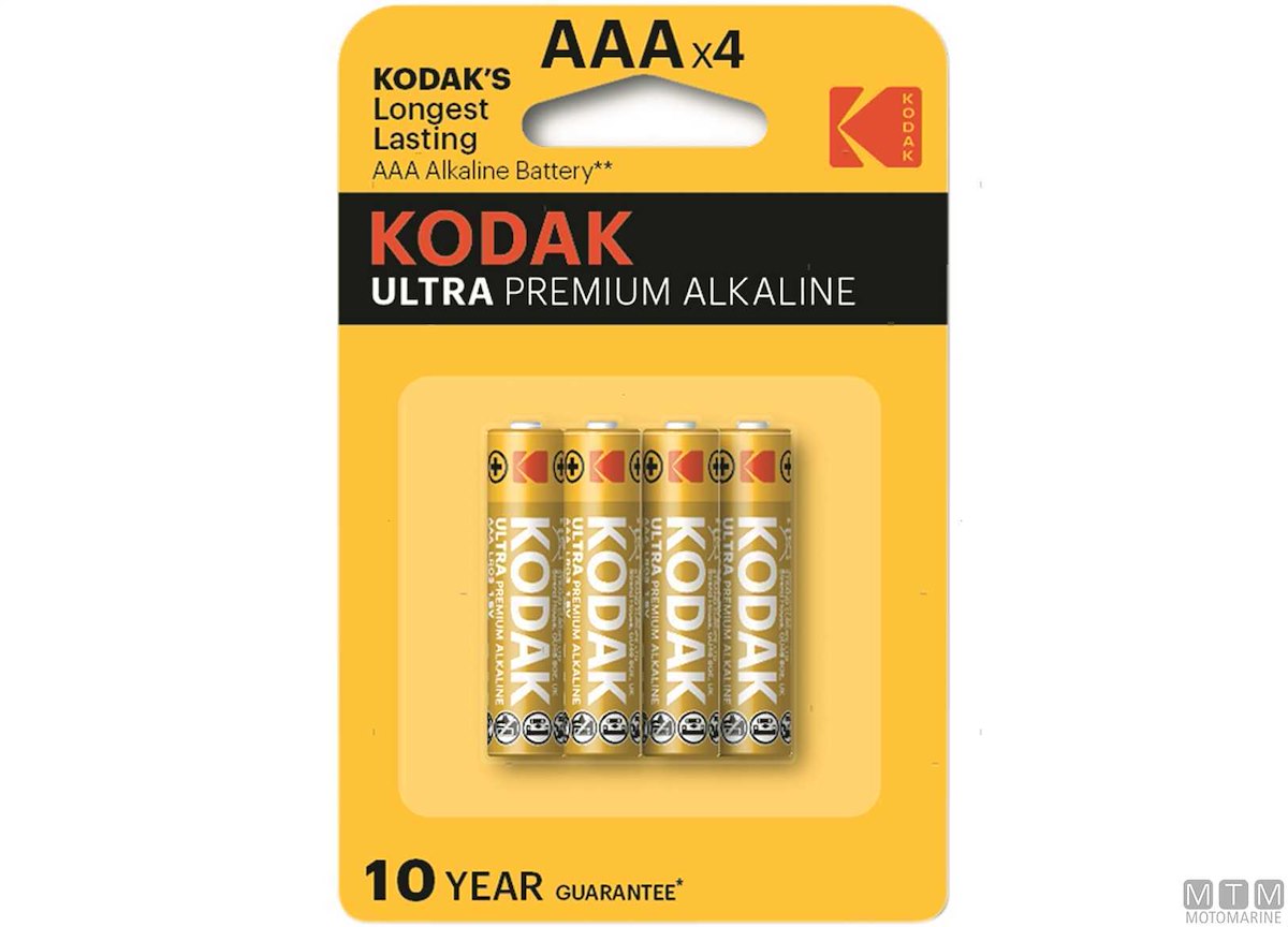 Batterie Kodak Ultra Premium Alkaline AAA (Mini Stilo) in confezione blister da 4 pezzi.
