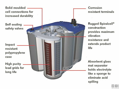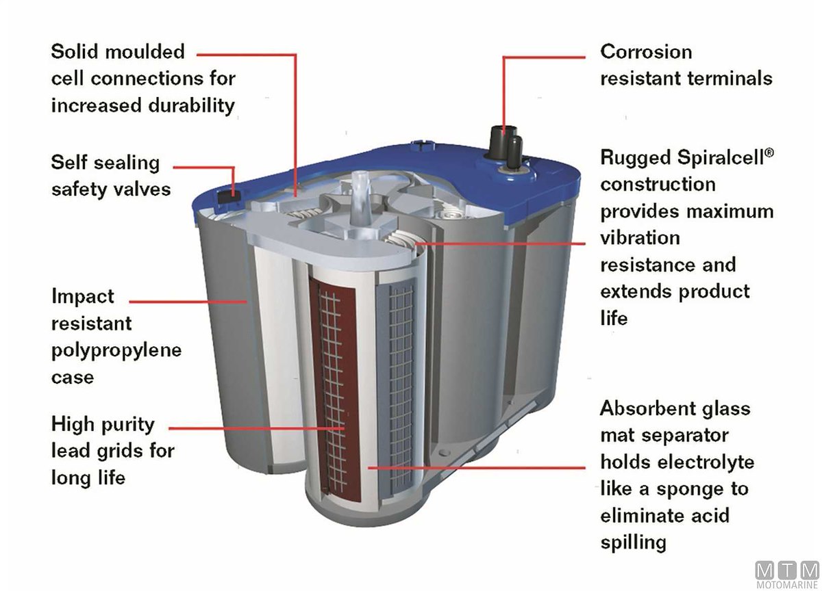 Le batterie OPTIMA® sono totalmente ermetiche ed esenti da manutenzione e possono essere montate in qualsiasi luogo e posizione. La struttura avvolgente minimizza i movimenti delle griglie e rende le batterie OPTIMA® molto resistenti alle vibrazioni. Queste batterie hanno una minima autoscarica, possono quindi rimanere inattive anche per un anno senza essere ricaricate.