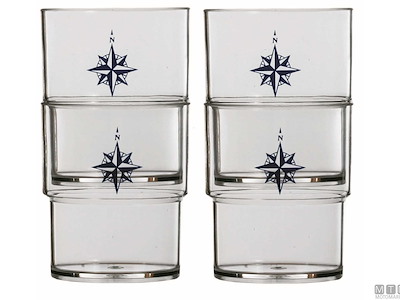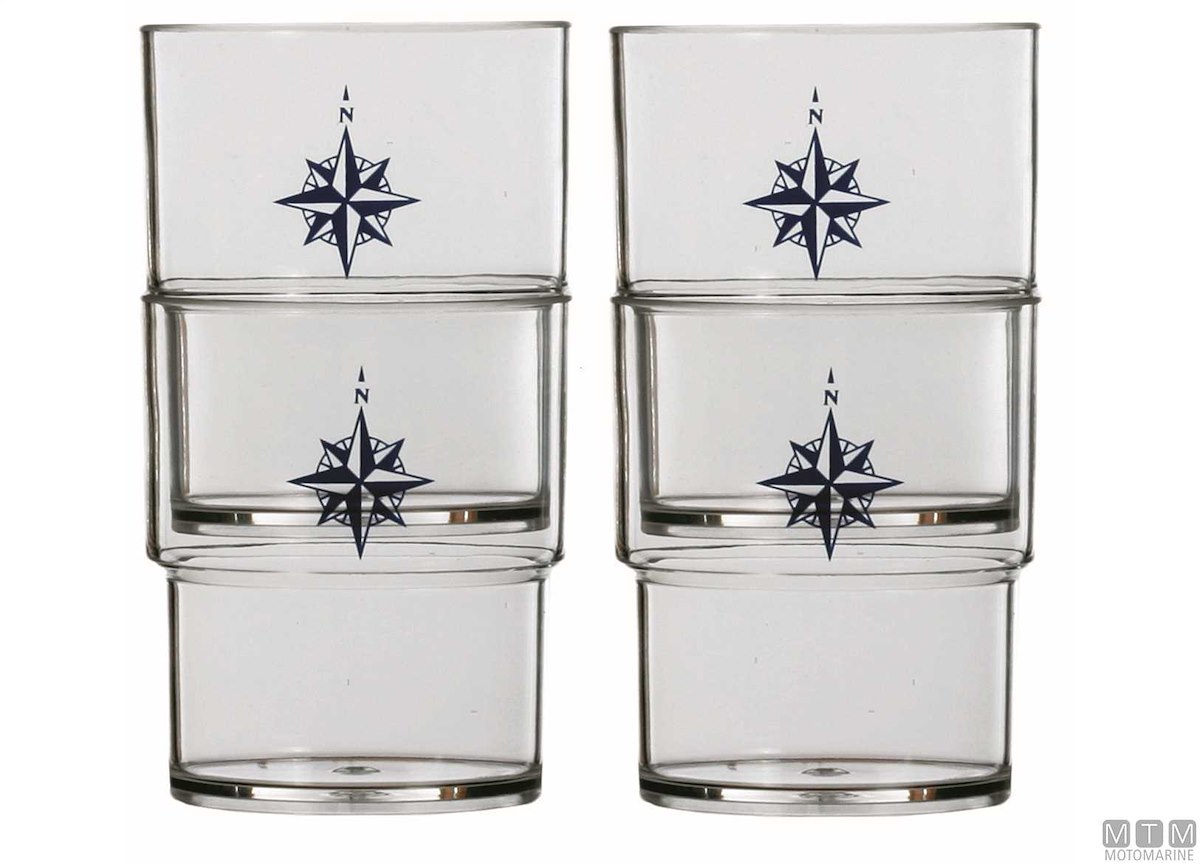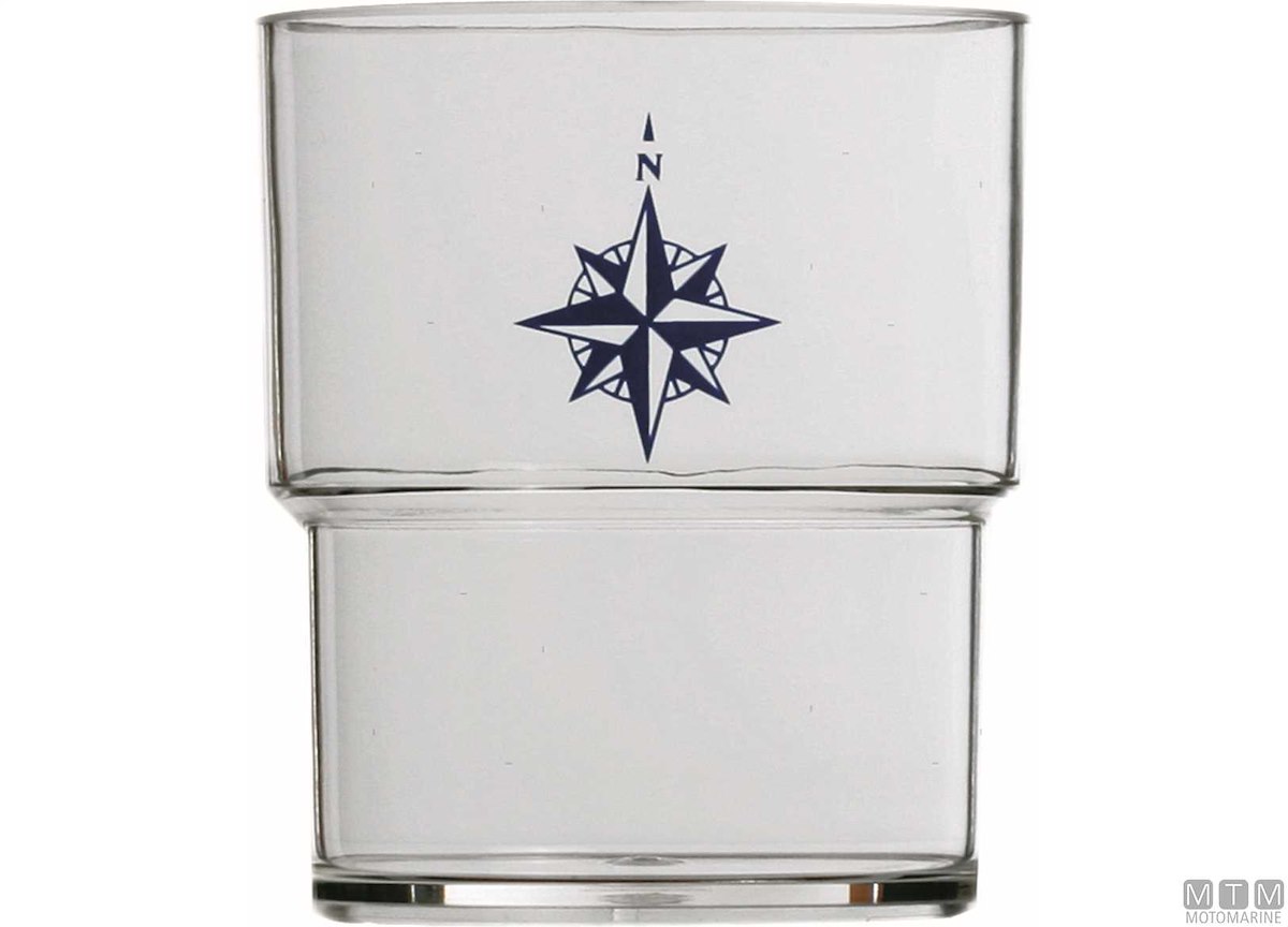 Bicchiere impilabile con decoro Northwind in confezione da 12 pezzi. In MS garantito 100% per uso alimentare. Lavabile in lavastoviglie, infrangibile e anti-macchia.