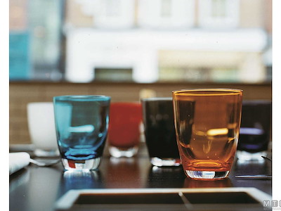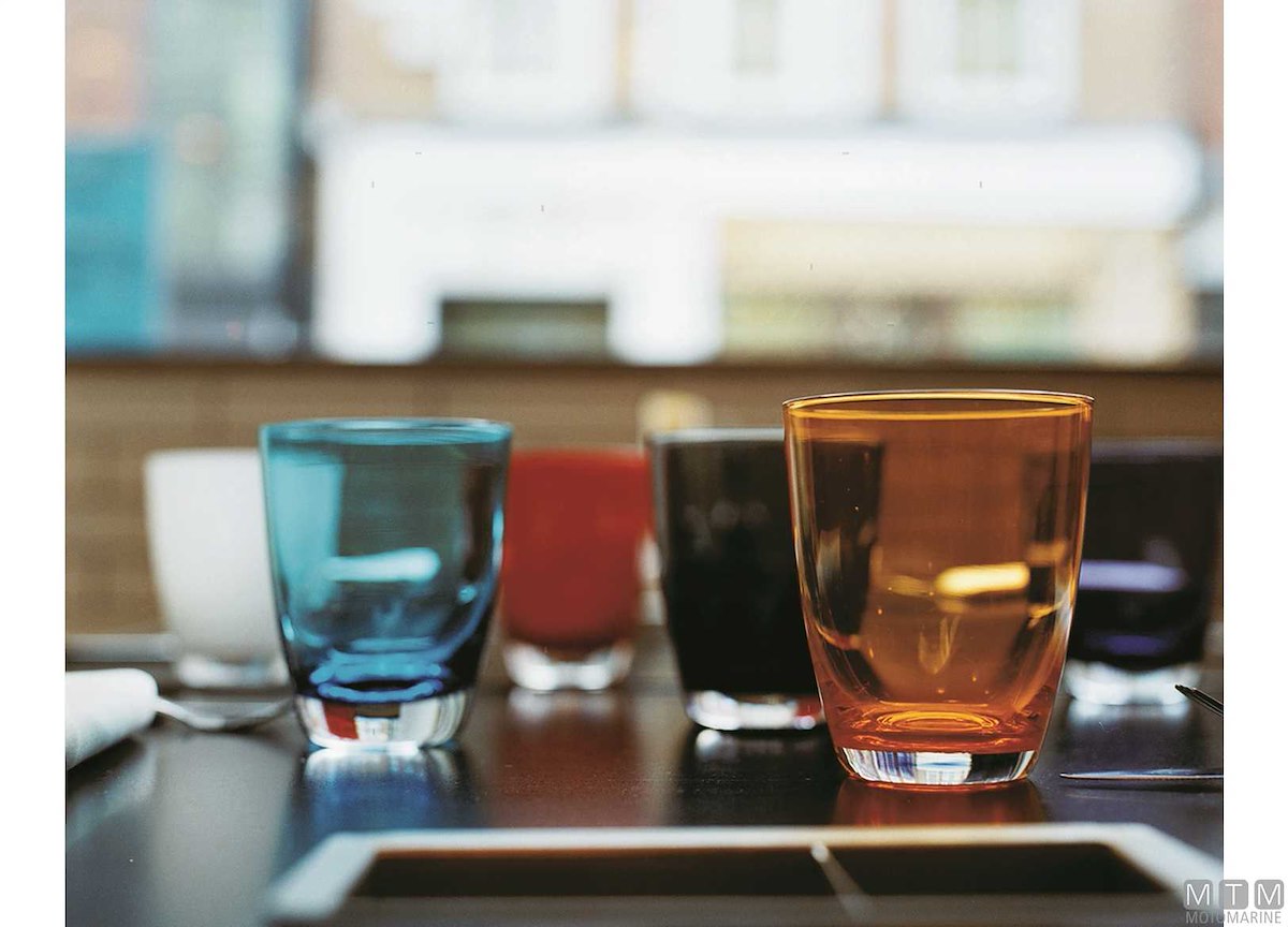 Bicchieri eleganti Tiburón Tumbler con un tocco di raffinata aggressività, soffiati a bocca e lavorati a mano in pasta di vetro colorata in assenza di piombo. Ideali per servire ogni tipo di drink dall'acqua ai soft drink, dai long drink ai cocktail più creativi.