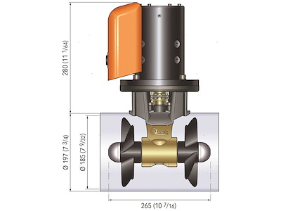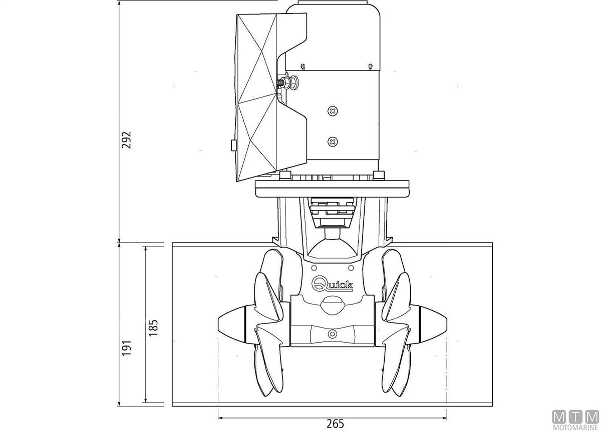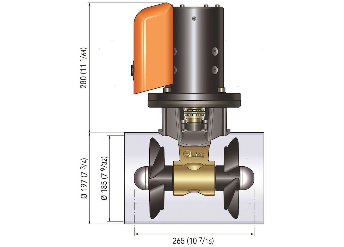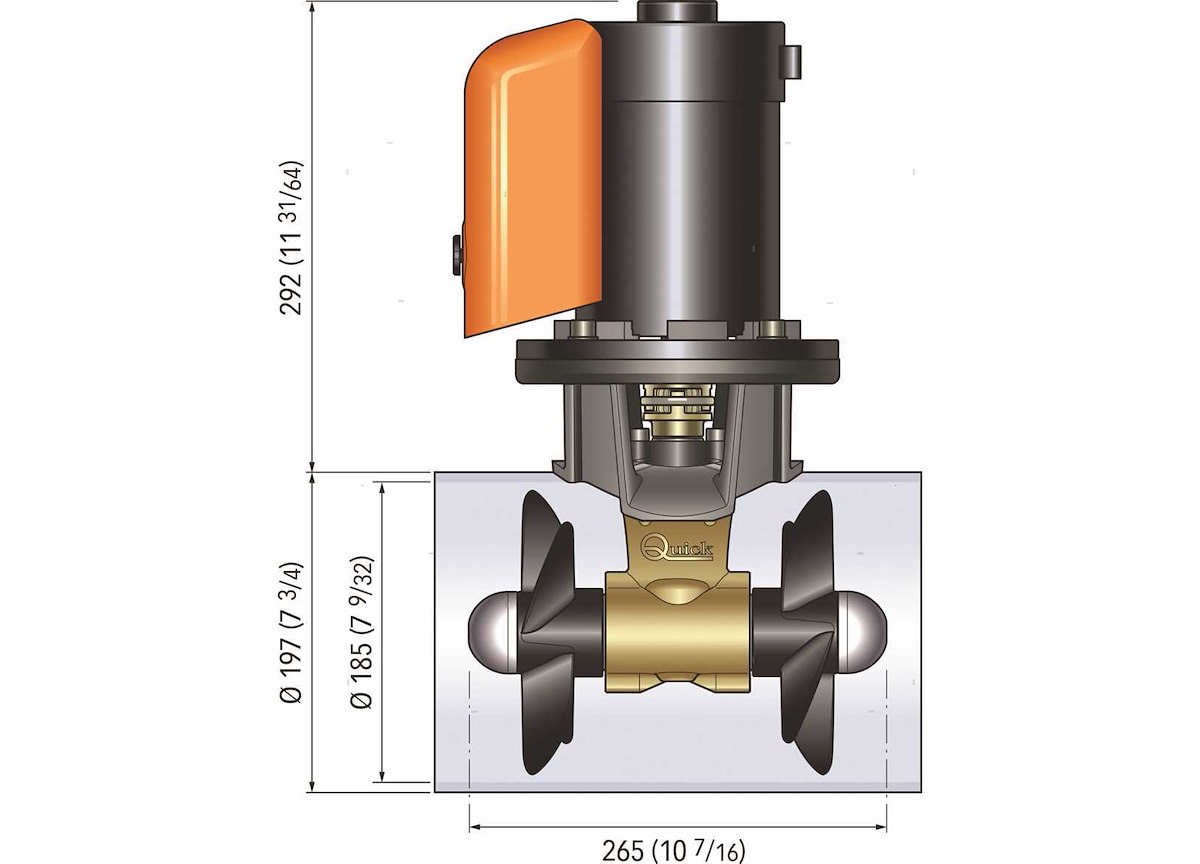 Elica di prua Bow Thruster Quick BTQ185 con 2 eliche controrotanti.- Elica doppia in robusto materiale composito. - Riduttore in bronzo- Carter di protezione per i teleinvertitori in robusto materiale composito- Anodo di zinco di serie indipendente dal riduttore e facilmente sostituibile- Dotata di giunto elastico parastrappi- Lunghezza imbarcazione consigliata 8-13 m (26-43 ft)