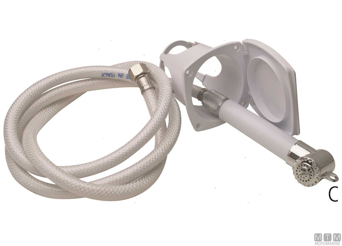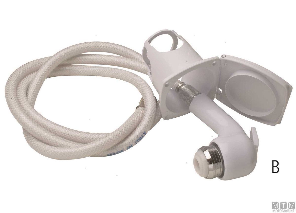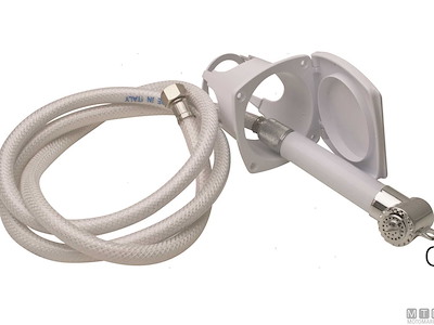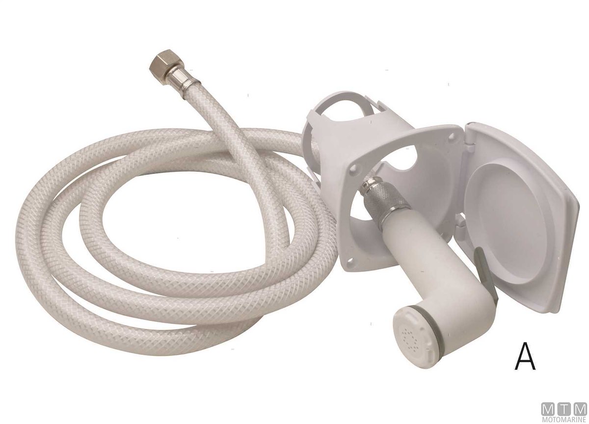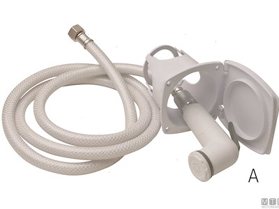 Contenitore Box per doccette a incasso in plastica antiurto resistente UV. Montaggio verticale oppure orizzontale. Da completare con doccetta e tubo flessibile a scelta. Diametro incasso 78 x 68 mm, esterno 97 x 87 mm, altezza 77 mm.