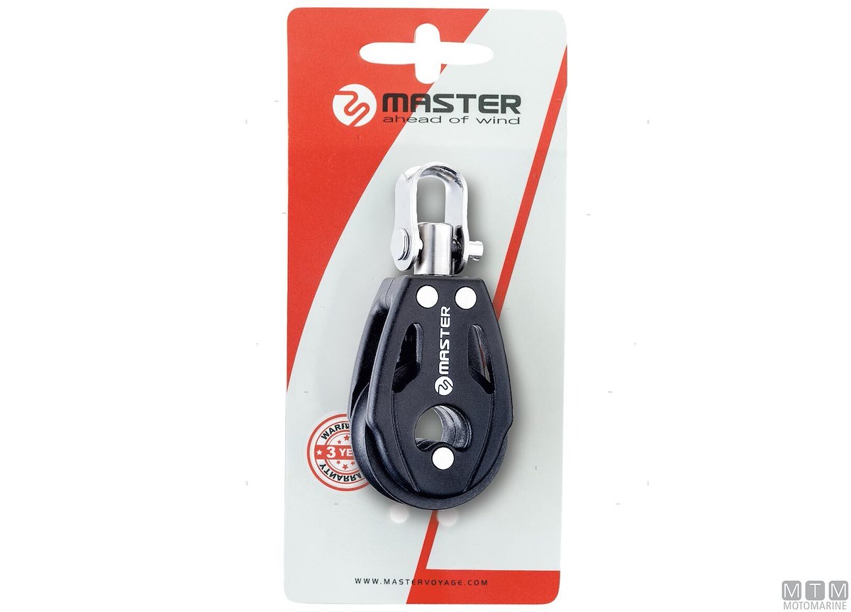 Bozzelli Master su sfere con puleggia da 29 mm. Cassa in materiale composito ultra leggero rinforzato con fibra e UV resistente con grillo girevole. Sfere ad alto scorrimento in Delrin stabilizzato UV.