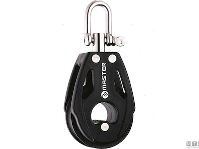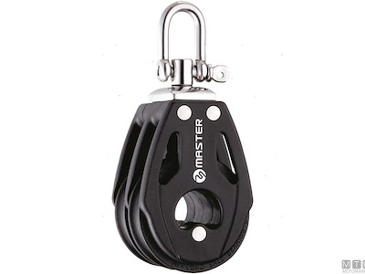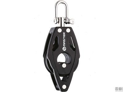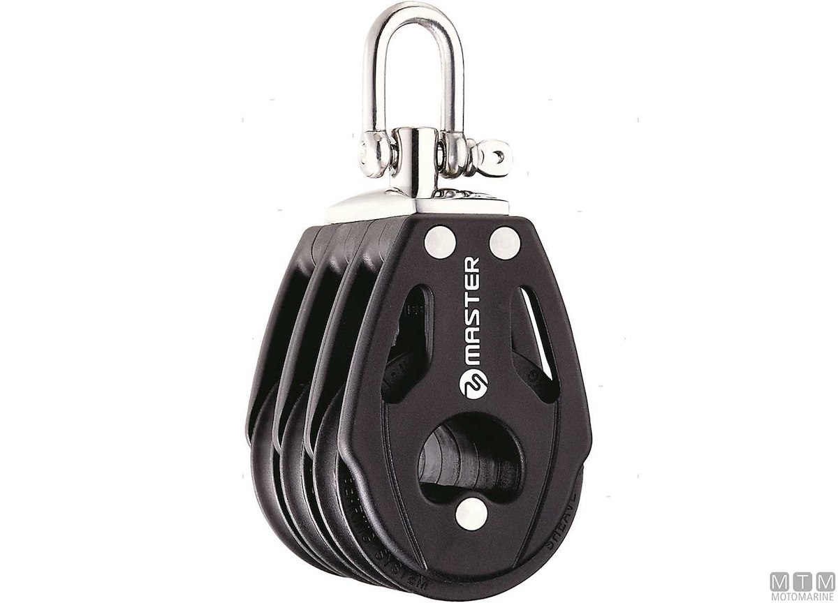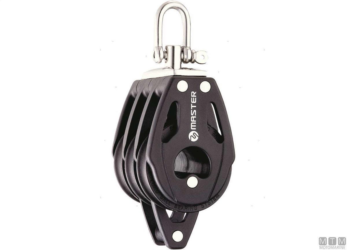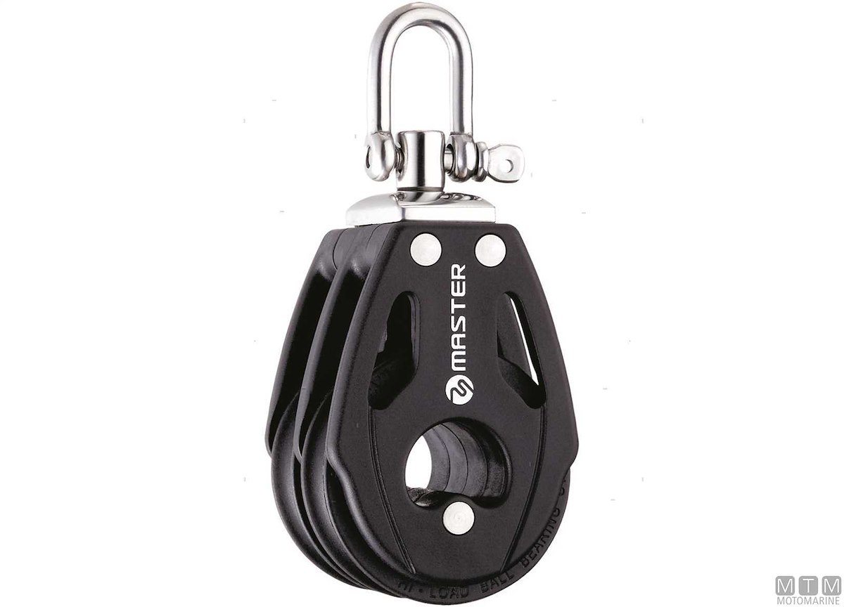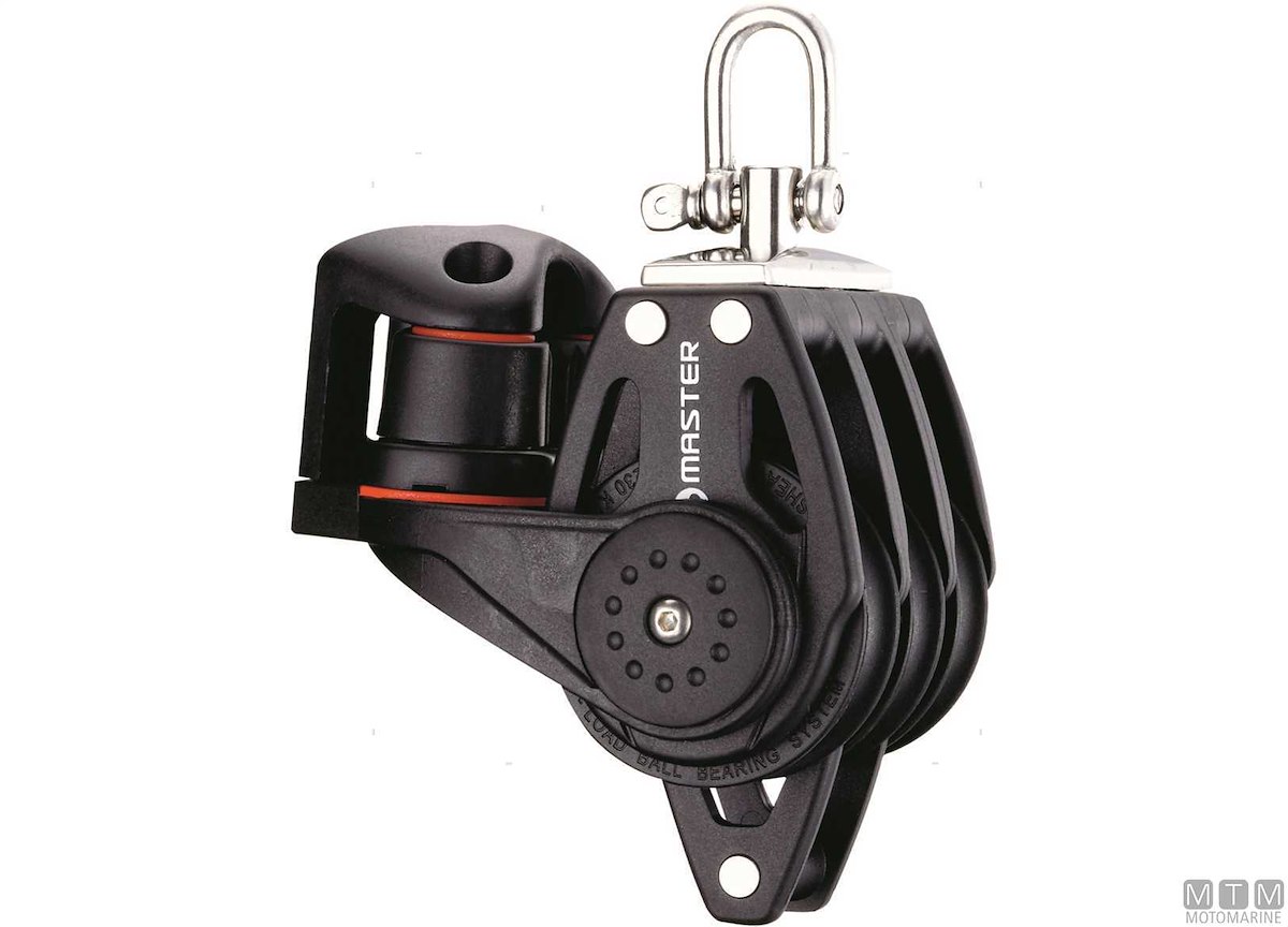 Bozzelli Master su sfere con puleggia da 75 mm. Cassa in materiale composito ultra leggero rinforzato con fibra e UV resistente. Il grillo girevole può essere bloccato in due posizioni grazie alla leva di blocco. Sfere ad alto scorrimento in Delrin stabilizzato UV.
