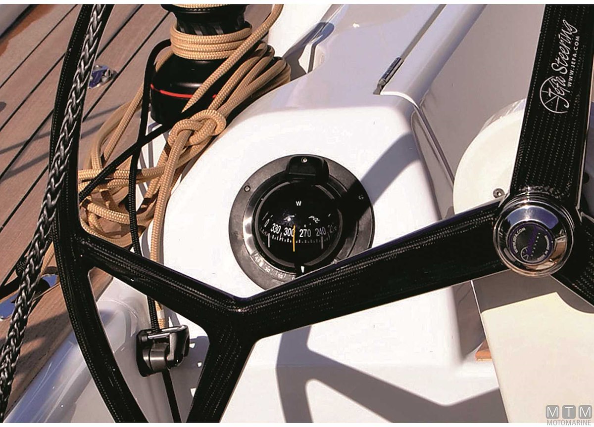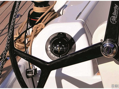 Bussola Pegasus BP2 a incasso verticale per barche a vela. Sospensione cardanica interna e compensazione incorporata. Completa di inclinometro e illuminazione LED 12/24V. Rosa a lettura frontale con gradazione di 5° e diametro apparente da 4"(100 mm).
