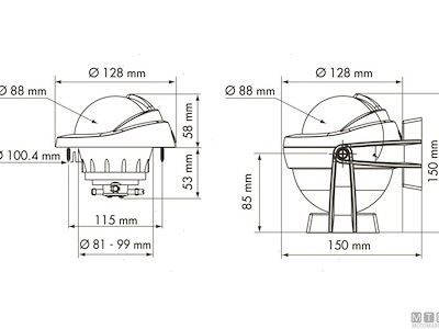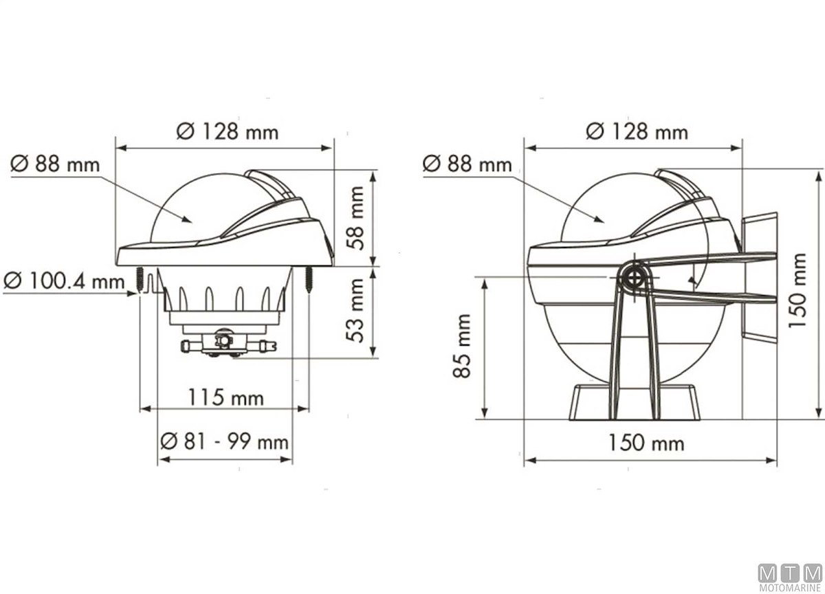 Bussola Plastimo Offshore 95 da incasso. • Diametro rosa 81 mm • Rosa conica con graduazione ogni 5°, lettura frontale • Indicata per barche a motore da 6 a 10 metri • Illuminazione LED 12/24 V di serie (non tagliare i fili per evitare danni al LED)
