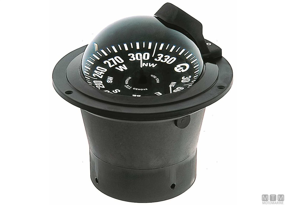Bussola a incasso White Star BW1 con schermo antiriflesso. Versione normale e alta velocità per barche veloci. • Compensazione incorporata • Sospensione cardanica interna • Illuminazione: 24V di serie (12V a richiesta) • Diametro apparente da 5” - 130 mm • Lettura posteriore (divisione rosa 5°) • Per imbarcazioni normali e alta velocità • Approvata per imbarcazioni da diporto e da lavoro fino a 150t • Garanzia 3 anni * Certificazione MED (se necessaria) da richiedere prima dell'acquisto