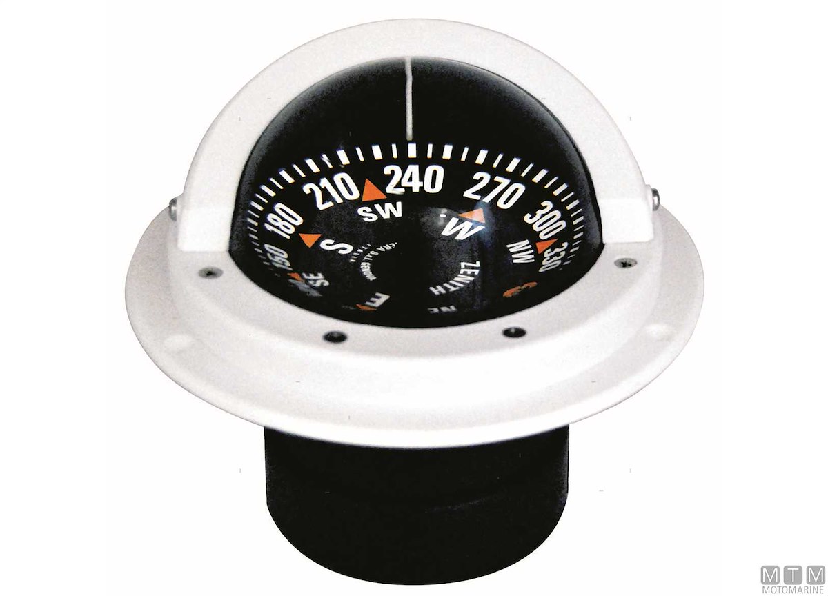 Bussola a incasso Zenith BZ1 con schermo antiriflesso. Versione normale e alta velocità per barche veloci. • Compensazione incorporata • Sospensione cardanica interna • Illuminazione: 12V di serie (24V a richiesta )• Diametro apparente da 3” - 80 mm • Lettura posteriore (divisione rosa 5°) • Per imbarcazioni normali e alta velocità • Garanzia 3 anni * Certificazione MED (se necessaria) da richiedere prima dell'acquisto