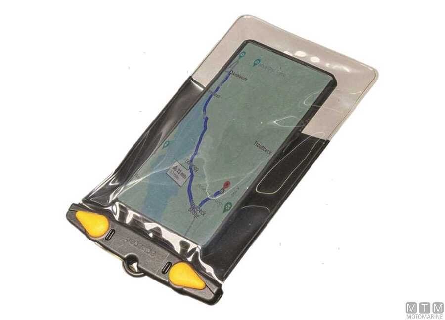 Custodia stagna fino a 10m di profondità per smartphone con supporto ed attacco a morsetto per tubo fino a 32 mm. Permette di usare lo smartphone in posizione regolabile verticale durante qualsiasi attività nautica e outdoor. Utilizzo garantito del telefono, di tutti i tasti e del touchscreen anche attraverso la custodia.