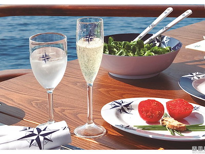 Calice da vino con decoro Northwind in confezione da 6 pezzi. In Ecozen, materiale innovativo infrangibile per uso alimentare. Lavabile in lavastoviglie, resistente alle bevande ad alto contenuto alcolico, adatto al microonde, riciclabile, resistente ai graffi e alle macchie di protezione solare.