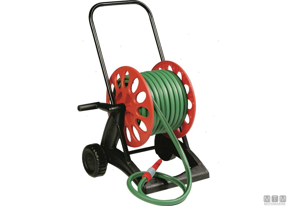 Carrello avvolgitubo Cyber in plastica completo di tubo da 1/2", lancia, 3 raccordi rapidi e attacco a rubinetto filettato da 3/4".