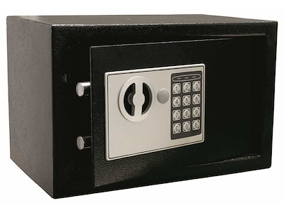 Cassaforte con tastiera a password utente, display LED e luce interna a LED.