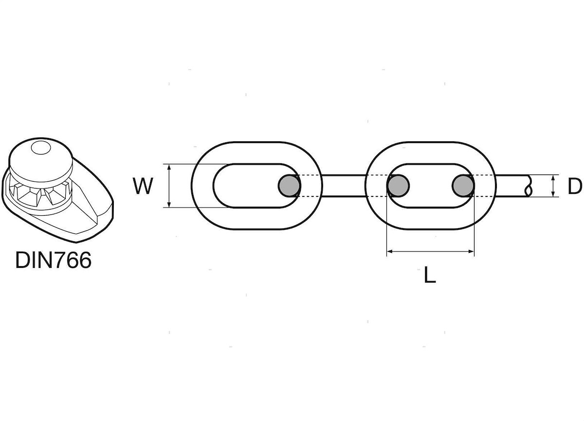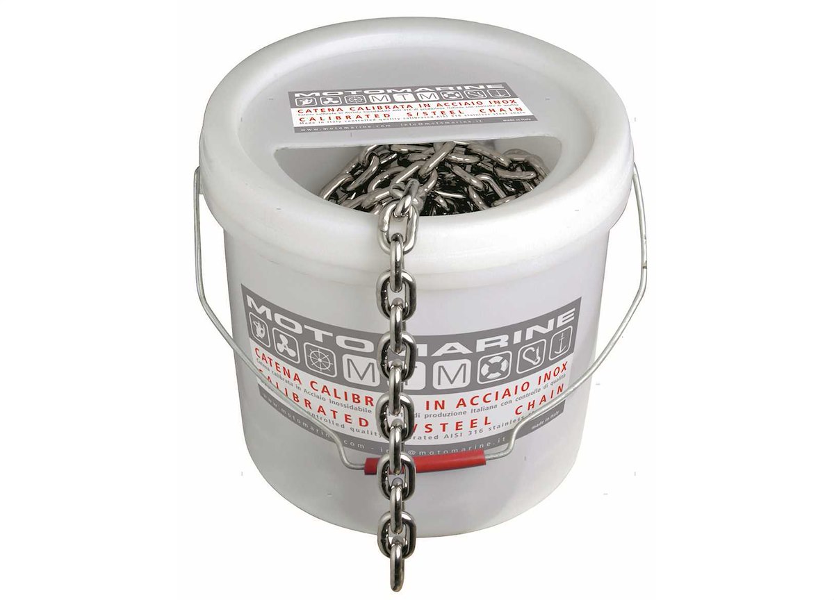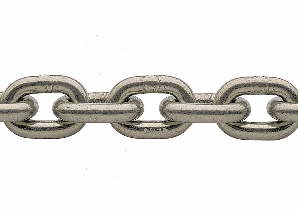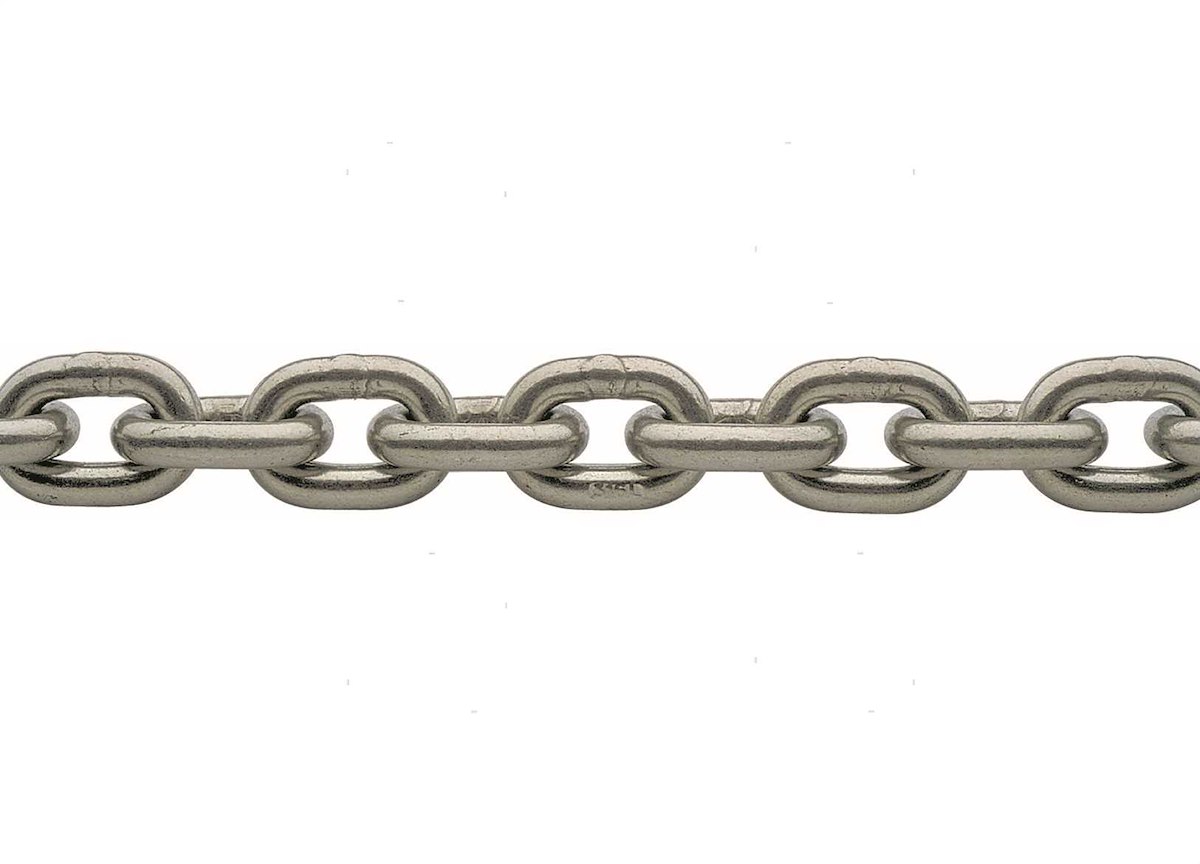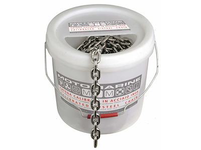 Catena calibrata in Acciaio Inox AISI 316 di qualitĂ superiore per verricelli salpa ancora. Produzione controllata con carico di rottura. Venduto al metro.