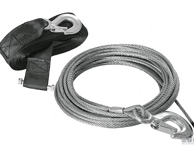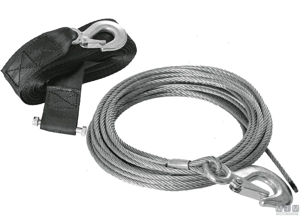 Cavi in Acciaio Zincato e cinghie in Nylon ad alta resistenza per verricelli di alaggio manuali. Completi di gancio terminale.