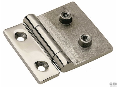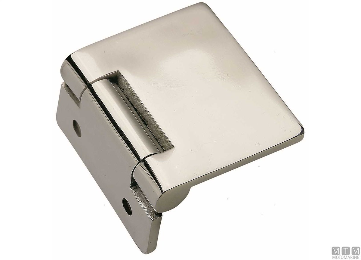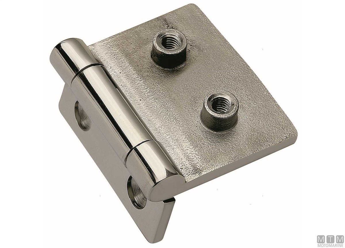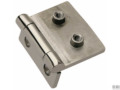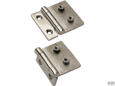 Cerniera eccentrica a filo in Acciaio Inox extra lucido. Fissaggio con viti interne ed esterne.
