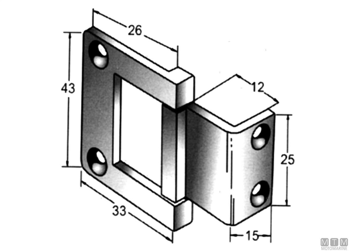 Cerniere offset in Acciaio Inox AISI 316 lucidato a specchio per boccaporti e portelli collo alto.