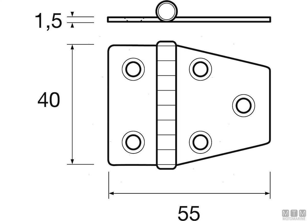 CERNIERA ASIMMETRICA 40X70MM IN ACCIAIO INOX 316