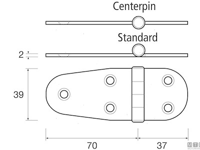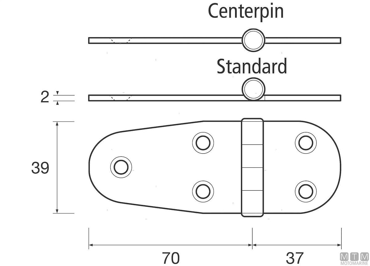 CERNIERA ASIMMETRICA ASSE CENTRALE 39X107MM IN ACCIAIO INOX 316