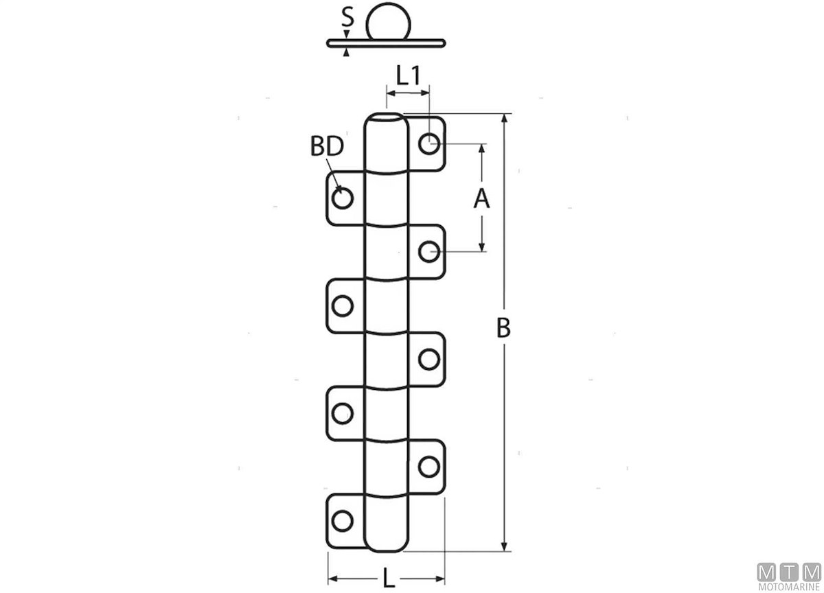 CERNIERA CENTOPIEDI FRENATA MATEC 123X28.5MM IN ACCIAIO INOX 316