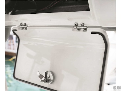 Cerniera frizionata in Acciaio Inox A4 AISI316 con momento torcente da 1,9 Nm e componenti antivibranti. Permette di aprire e chiudere porte, portelli e chiusure senza urti e danni da fine corsa o da colpi di vento.