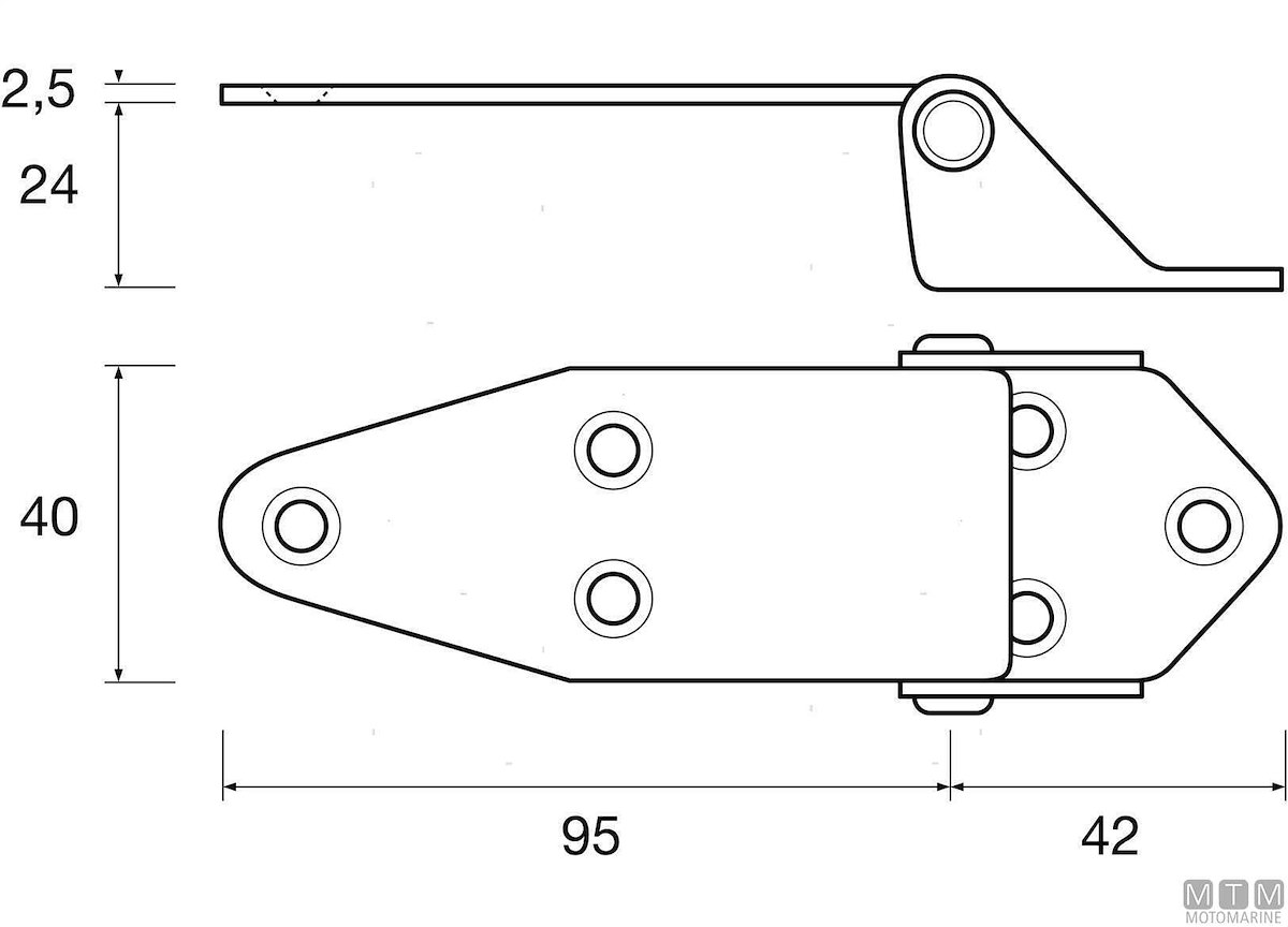 Cerniera a sbalzo basso in Acciaio Inox per boccaporti e portelli.