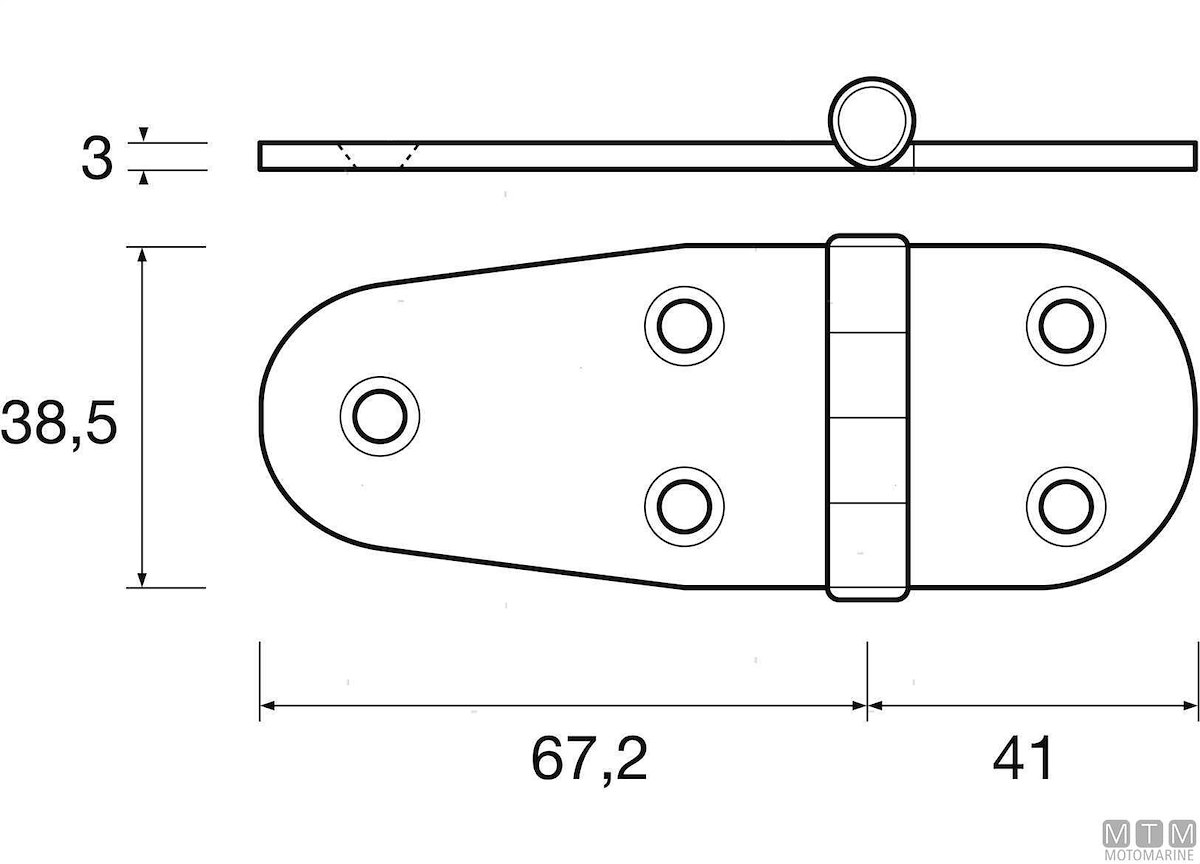 Cerniera eccentrica media molto robusta in Acciaio Inox Extracrome. Spessore 3 mm.